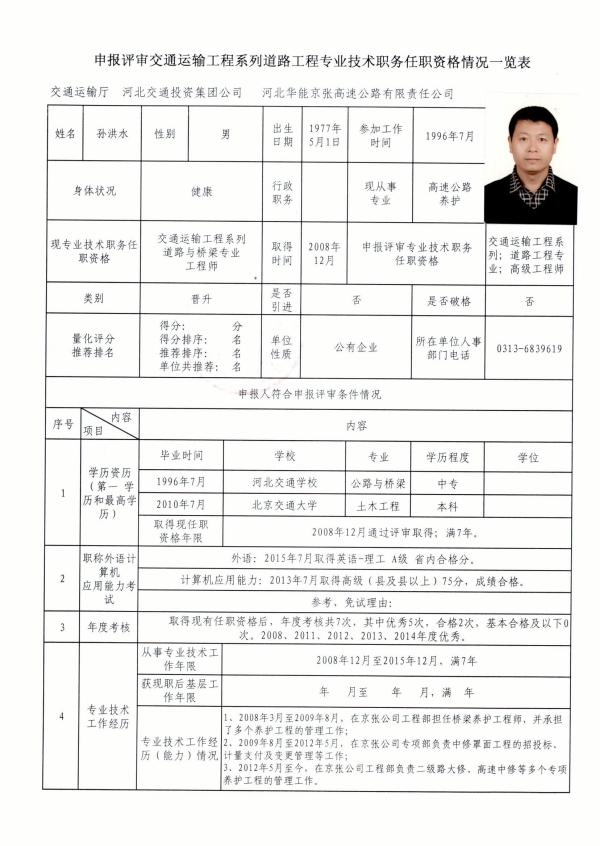 職稱申報(bào)公示(孫洪水)