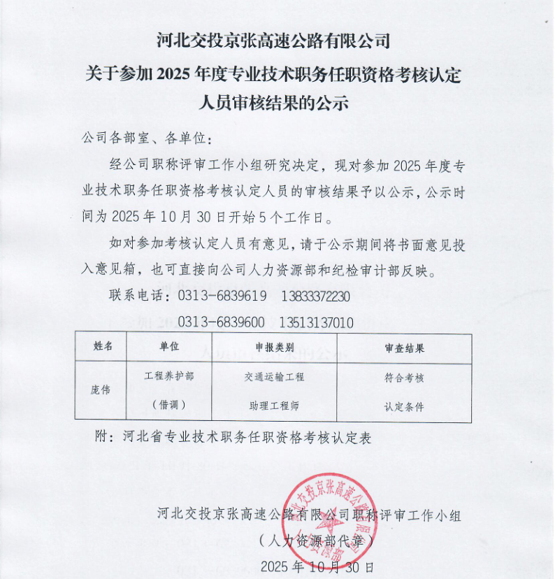 關(guān)于參加2025年度專業(yè)技術(shù)職務(wù)任職資格考核認定人員審核結(jié)果的公示