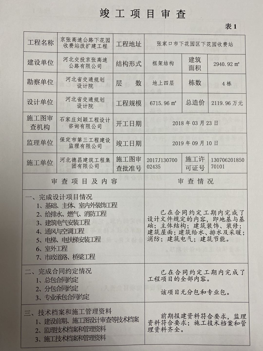 京張高速公路下花園收費(fèi)站改擴(kuò)建工程竣工驗(yàn)收?qǐng)?bào)告